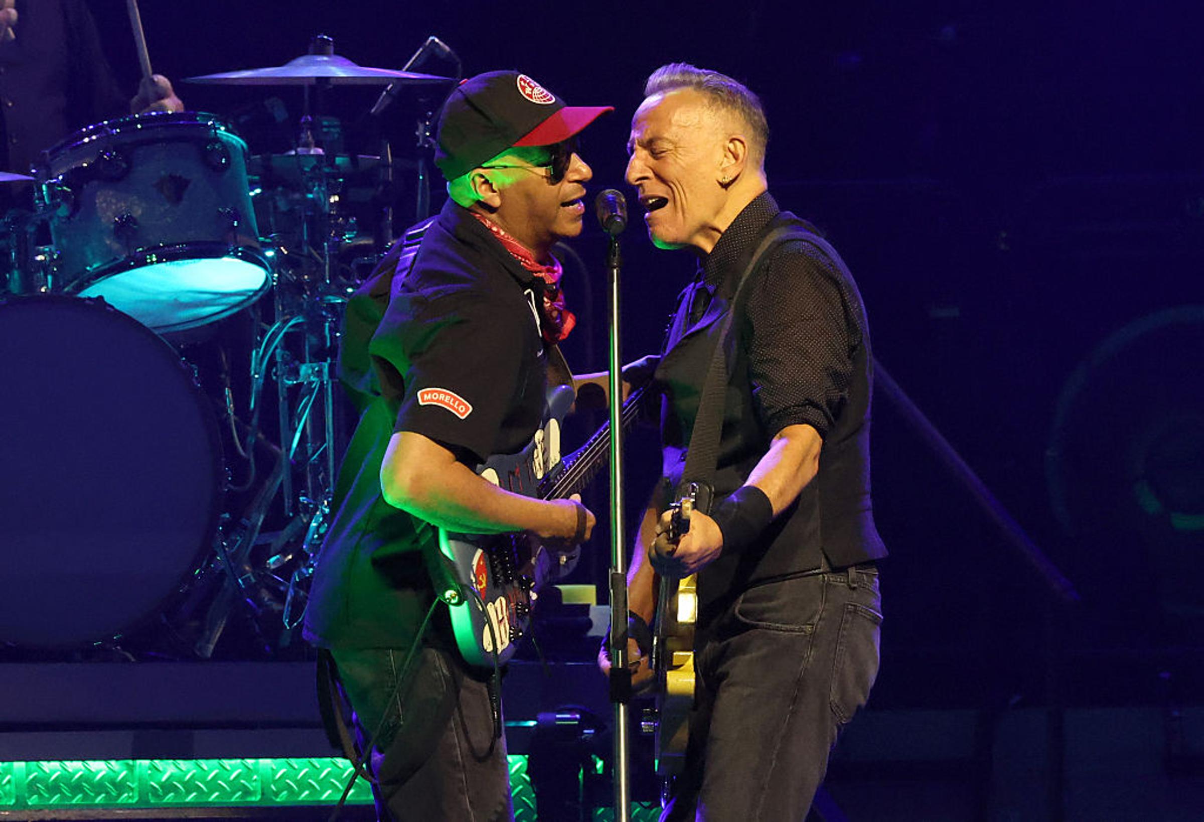 Tom Morello, Bruce Springsteen & The E Street Band perform during Land of Hope & Dreams American Tour. Kevin Mazur/Getty Images